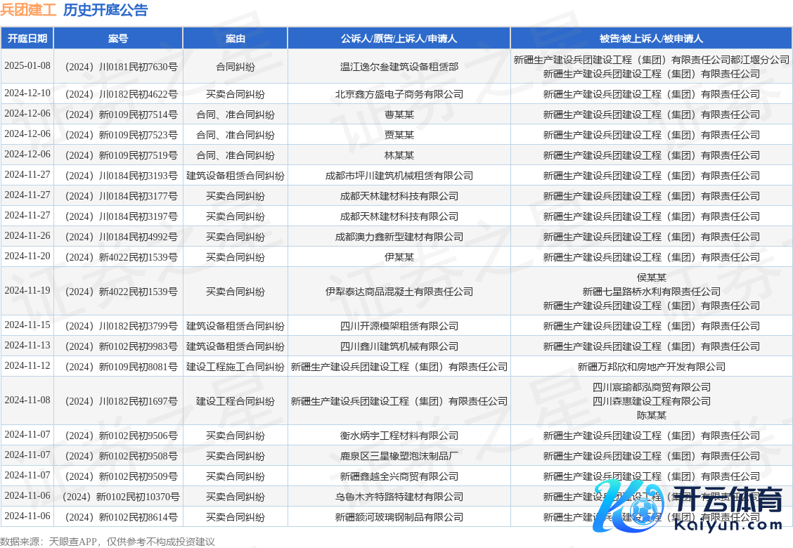 本站音讯,把柄天眼查APP泄漏,近日公布了一则新疆坐褥教训兵团教训工程(集团)有限背负公司行为被告/被上诉东说念主的开庭公告,谛视实质如下: