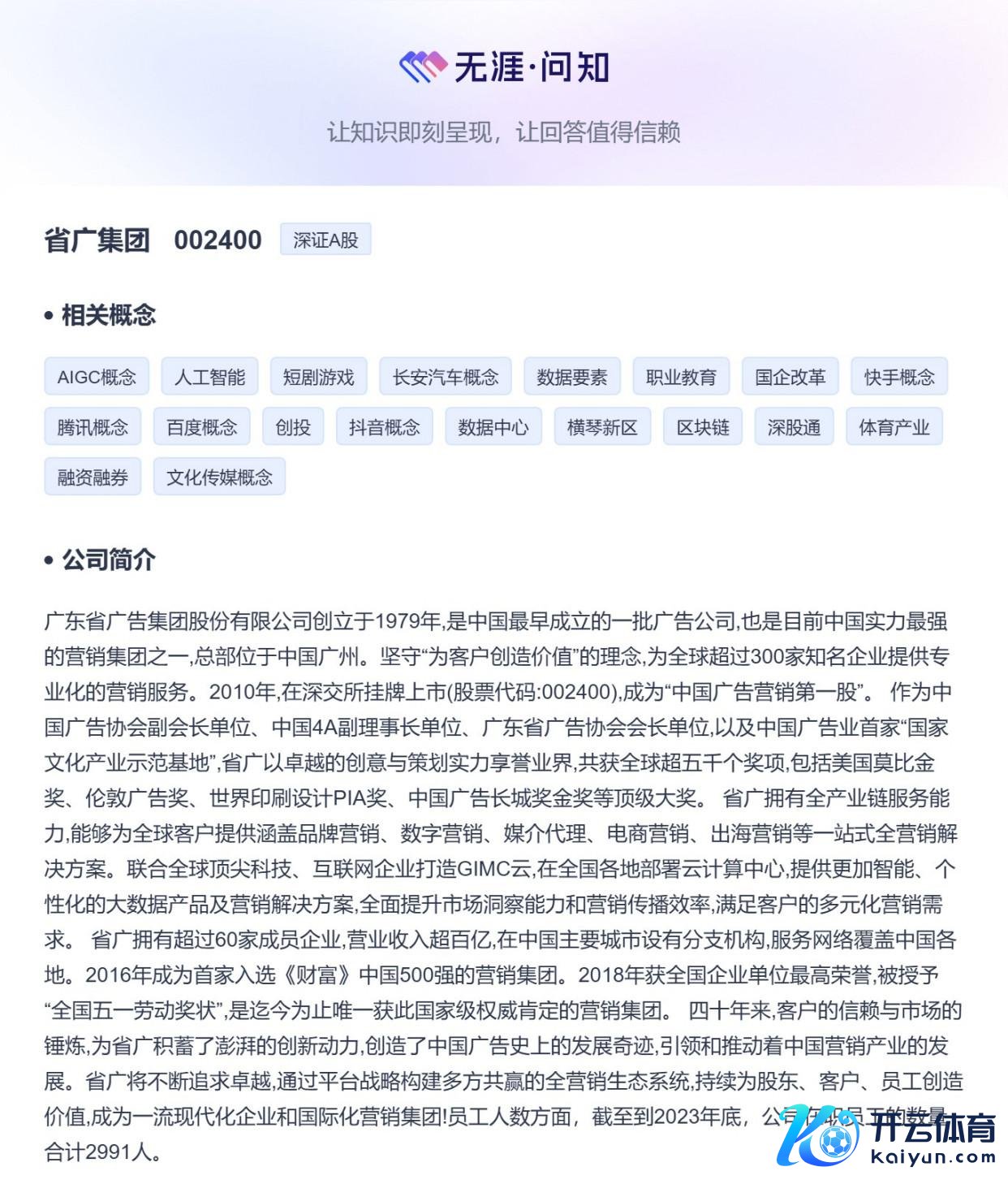 广东省告白集团股份有限公司创立于1979年九游体育娱乐网,是中国最早建树的一批告白公司,亦然现在中国实力最强的营销集团之一,总部位于中国广州。 2010年在深交所挂牌上市,成为“中国告白营销第一股”。 省广领有全产业链做事才智,为民众客户提供涵盖品牌营销、数字营销、序论代理、电商营销、出海营销等一站式全营销处理决策。都集民众顶尖科技、互联网企业打造GIMC云,在寰宇各地部署云想象中心,提供愈加智能、个性化的大数据家具及营销处理决策,知足客户的多元化营销需求。 省广领有逾越60家成员企业,生意收