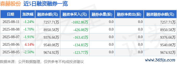 本站音问,扬弃2025年8月11日收盘,森赫股份(301056)报收于11.98元,下降1.24%,换手率3.7%,成交量6.52万手,成交额7836.17万元。 8月11日的资金流向数据方面,主力资金净流出1547.3万元,占总成交额19.75%,游资资金净流入204.99万元,占总成交额2.62%,散户资金净流入1342.31万元,占总成交额17.13%。 近5日资金流向一览见下表: 森赫股份融资融券信息败露,融资方面,当日融资买入1039.17万元,融资偿还2732.04万元,融资净偿还