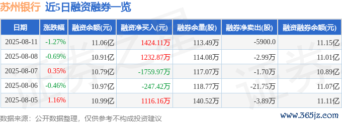 本站音问,放弃2025年8月11日收盘,苏州银行(002966)报收于8.55元,下落1.27%,换手率0.78%,成交量34.15万手,成交额2.93亿元。 8月11日的资金流向数据方面,主力资金净流入1194.39万元,占总成交额4.08%,游资资金净流入63.69万元,占总成交额0.22%,散户资金净流出1258.08万元,占总成交额4.29%。 近5日资金流向一览见下表: 苏州银行融资融券信息知道,融资方面,当日融资买入3285.79万元,融资偿还1861.68万元,融资净买入1424