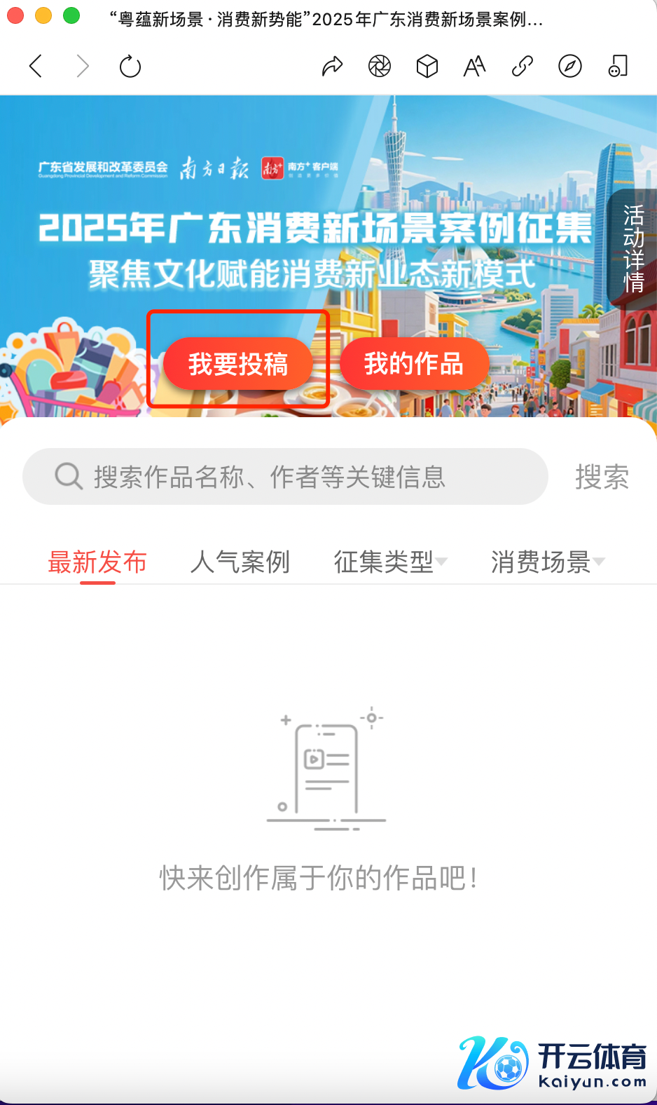 下载并参加南边+客户端,点击右下角【我】—【精选步履】—【稽察更多】—【2025年广东挥霍新场景案例搜集】—点击【我要投稿】—选拔【搜集类型】—选拔【搜集场景】