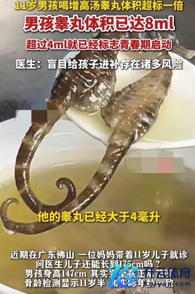 这是拔苗生长啊,姆妈太心急了!就在最近,广东佛山又出了个让东说念主哭笑不得的家长操作,看完我确切血压齐要往上窜两格。 有位姆妈怕我方11岁的娃长不到1米75,这畏俱值径直拉满,天天跟熬中药似的给娃炖海马田七汤,着力呢?身高才刚到1米47——说句简直的,这身高在同庚级段明明即是平素水平,没拖后腿也没拔尖,着力可好,娃的睾丸体积径直飙到8毫升。 咱先科普个冷常识,11岁的娃这玩意儿跳跃4毫升,就等于芳华期提前按下了启动键。这位姆妈满心以为是给娃开了“长高挂”,着力倒好,径直把娃改日的身高空间给锁死