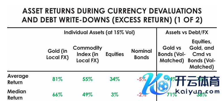 达利欧总结了“货币贬值和债务减记时间的资产讲演”历史数据,发现黄金、巨额商品和股票在这些时期频繁发扬出色。