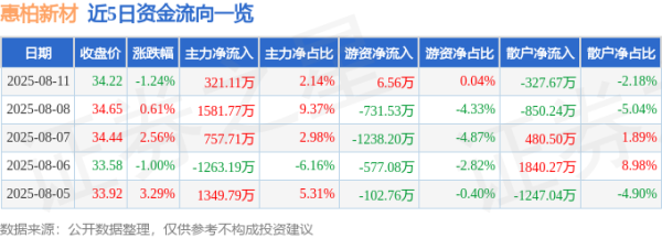 现金九游体育app平台近5日资金流向一览见下表:惠柏新材融资融券信息透露-Ninegame-九游体育(中国)官方网站|jiuyou.com